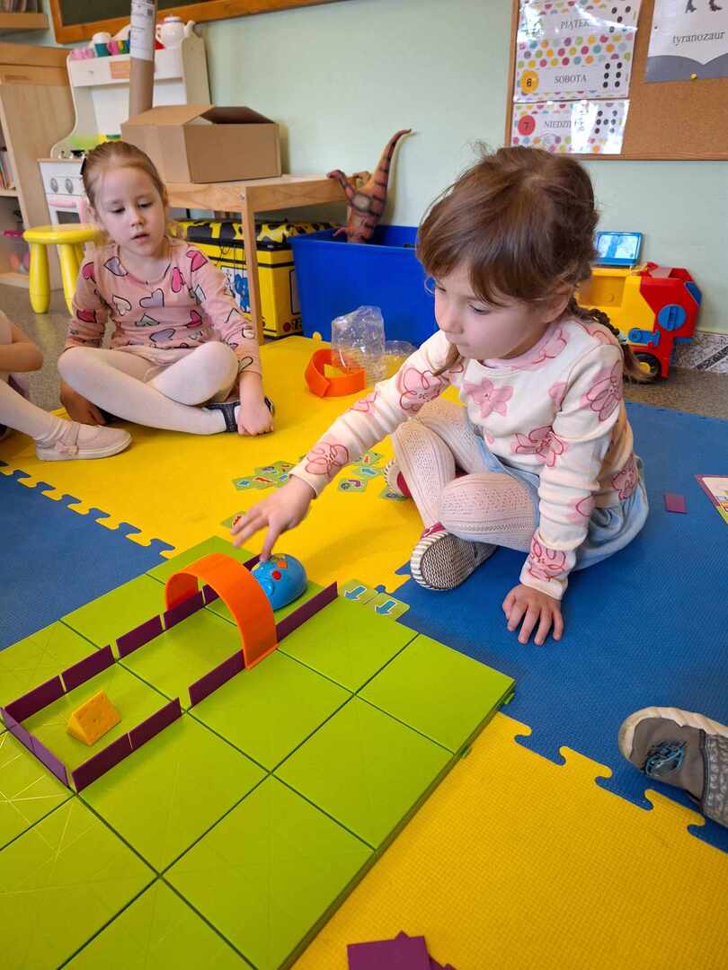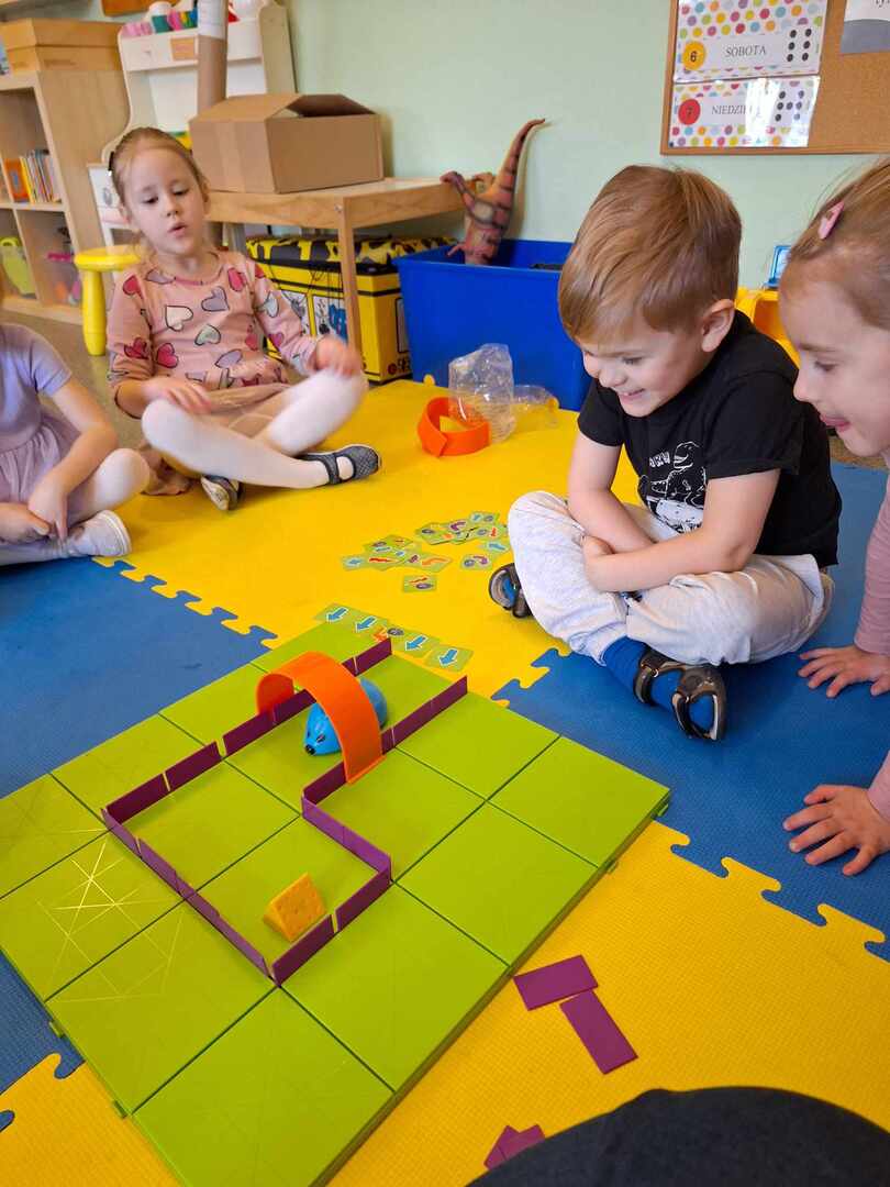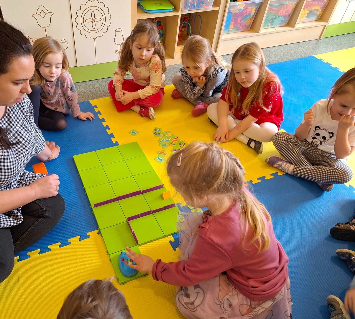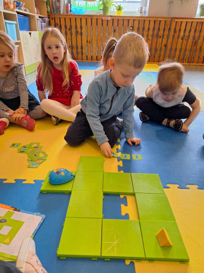 Dzieci z grup „Sówki” oraz „Króliczki” uwielbiają zabawy w kodowanie, które w łagodny i przyjazny sposób wprowadzają dzieci w świat logicznego myślenia, obserwacji i dedukcji. Stopniowo oswajamy dzieci z nowymi pojęciami, które stają się dla dzieci bardziej zrozumiałe i pozytywnie kojarzone, bo programowanie może być świetną zabawą.
