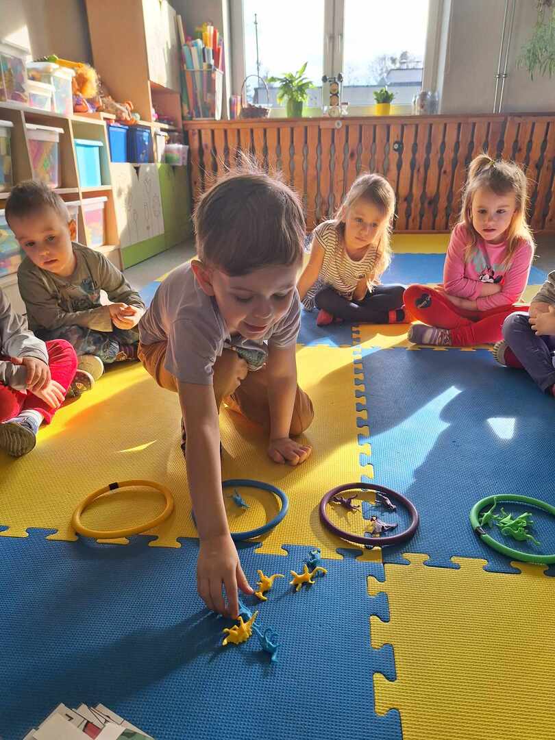 26 lutego to Dzień Dinozaura- święto prehistorycznych stworzeń. Dzieci poznały historię dinozaurów, dowiedziały się kiedy żyły, czym się żywiły i jak wyglądały. Rozmawialiśmy na temat pracy paleontologa i wspólnie dokonaliśmy ,,wykopalisk" dzięki którym zobaczyliśmy jak wyglądają szkielety niektórych dinozaurów. Jak się okazało trudne nazwy niektórych z nich nie są straszne dla naszych przedszkolaków, wszyscy sobie z nimi doskonale poradzili.