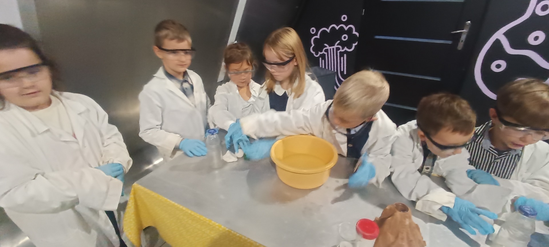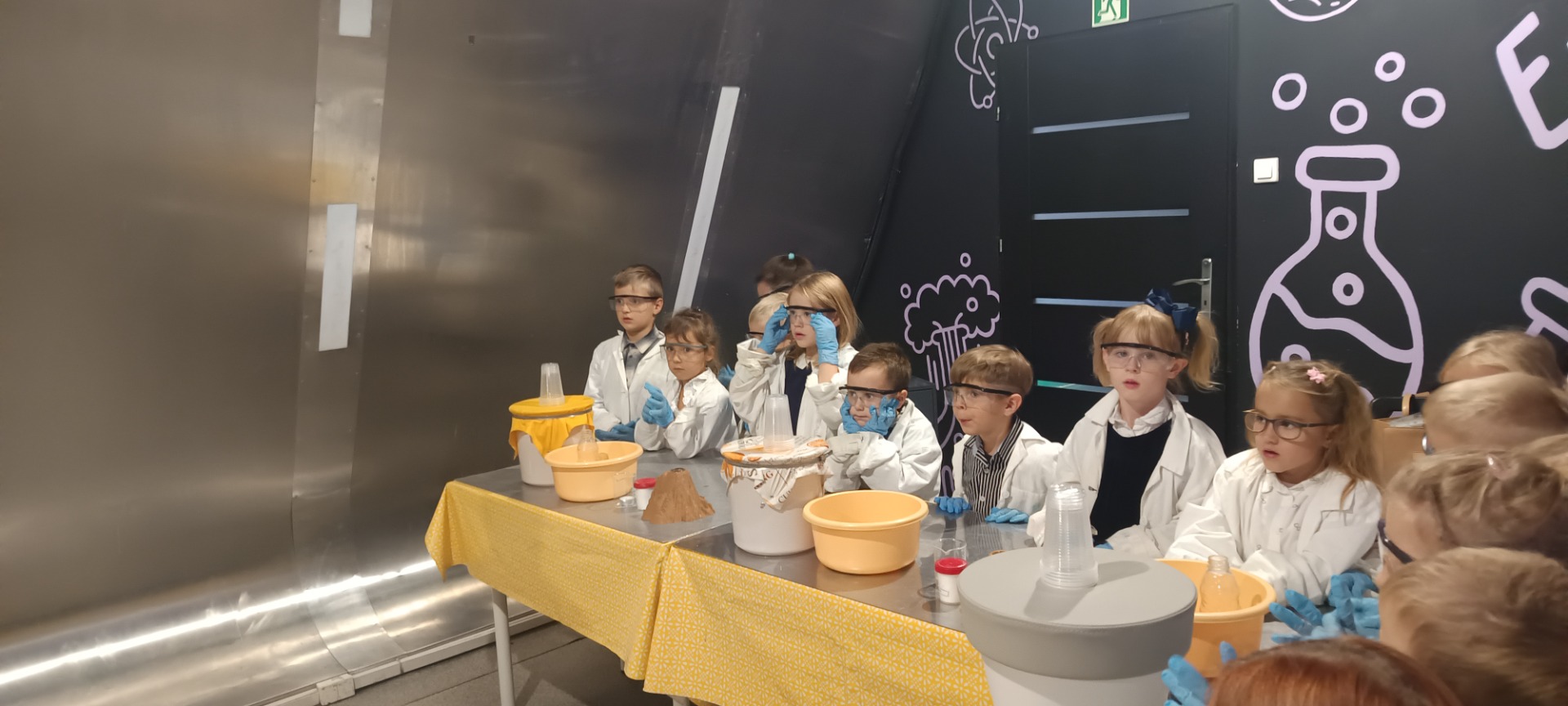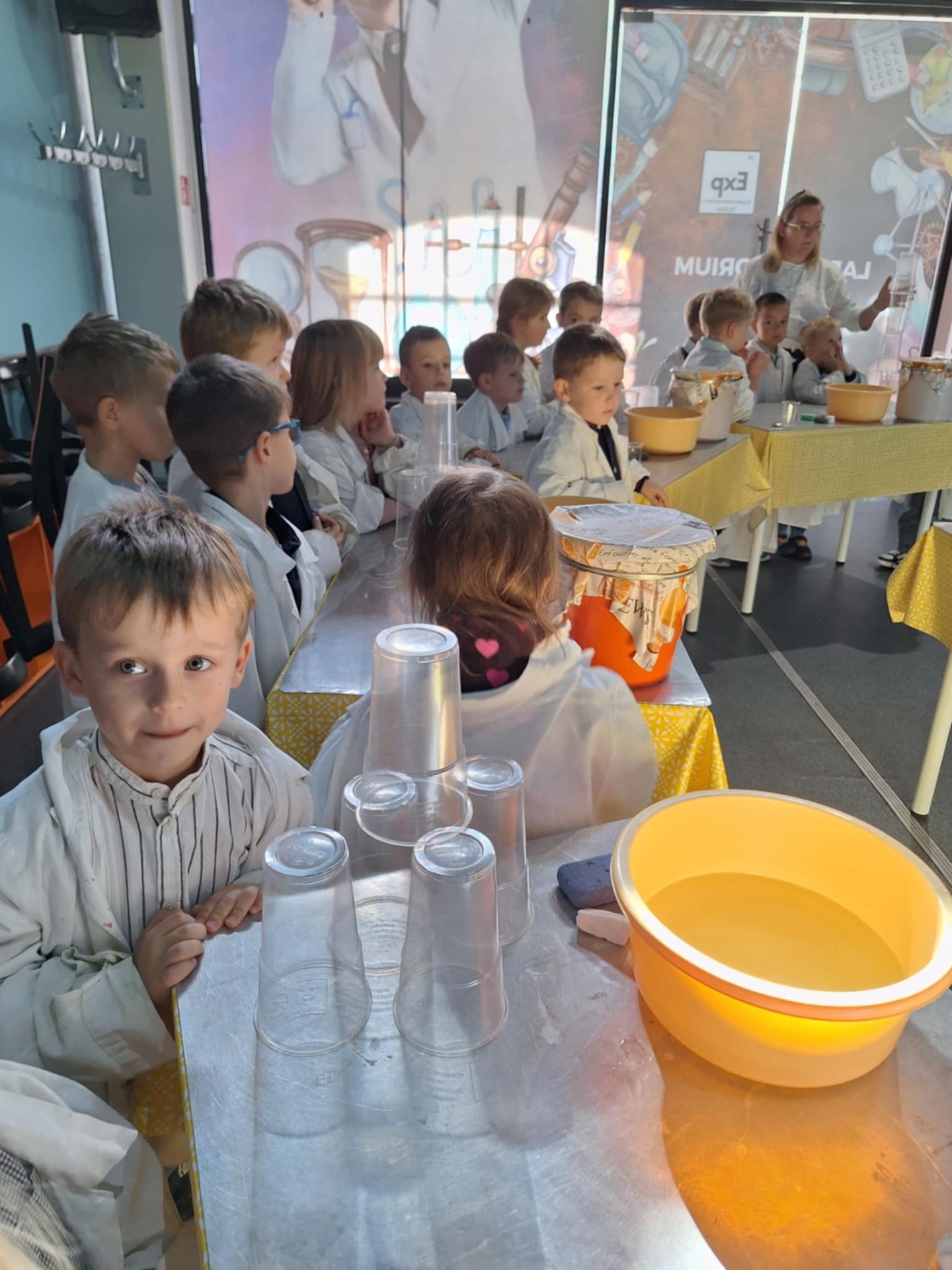 Po teatralnych emocjach przyszedł czas na kolejną atrakcję – warsztaty „Cztery żywioły” w Eksperymentarium. Dzieci poprzez zabawę i doświadczenia mogły poznać tajemnice ognia, wody, powietrza i ziemi. Było dużo radości, eksperymentów i wspólnego odkrywania świata.