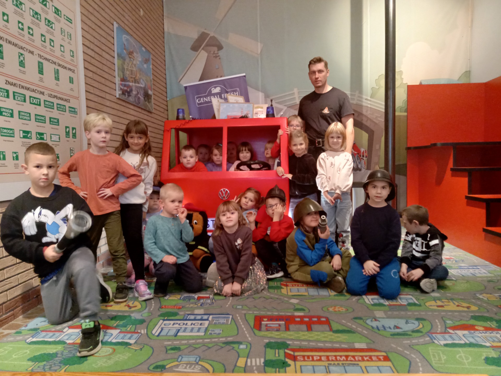 W piękny, jesienny dzień dzieci z grupy Tygryski wybrały się na swoją pierwszą, wyjazdową wycieczkę i odwiedziły dwa wyjątkowe miejsca w Koluszkach- Bibliotekę Miejską oraz Państwową Straż Pożarną. Wzięły udział w zajęciach edukacyjnych przeprowadzonych przez pracowników obu tych instytucji. W wyjątkowej sali edujacyjnej "Ognik" dowiedziały się wiele na temat bezpieczeństwa, obejrzały wyjatkiwe makiety i symulacje pożarowe- nie mogło zabraknąć oczywiście prawdziwych wozów strażackich🙂