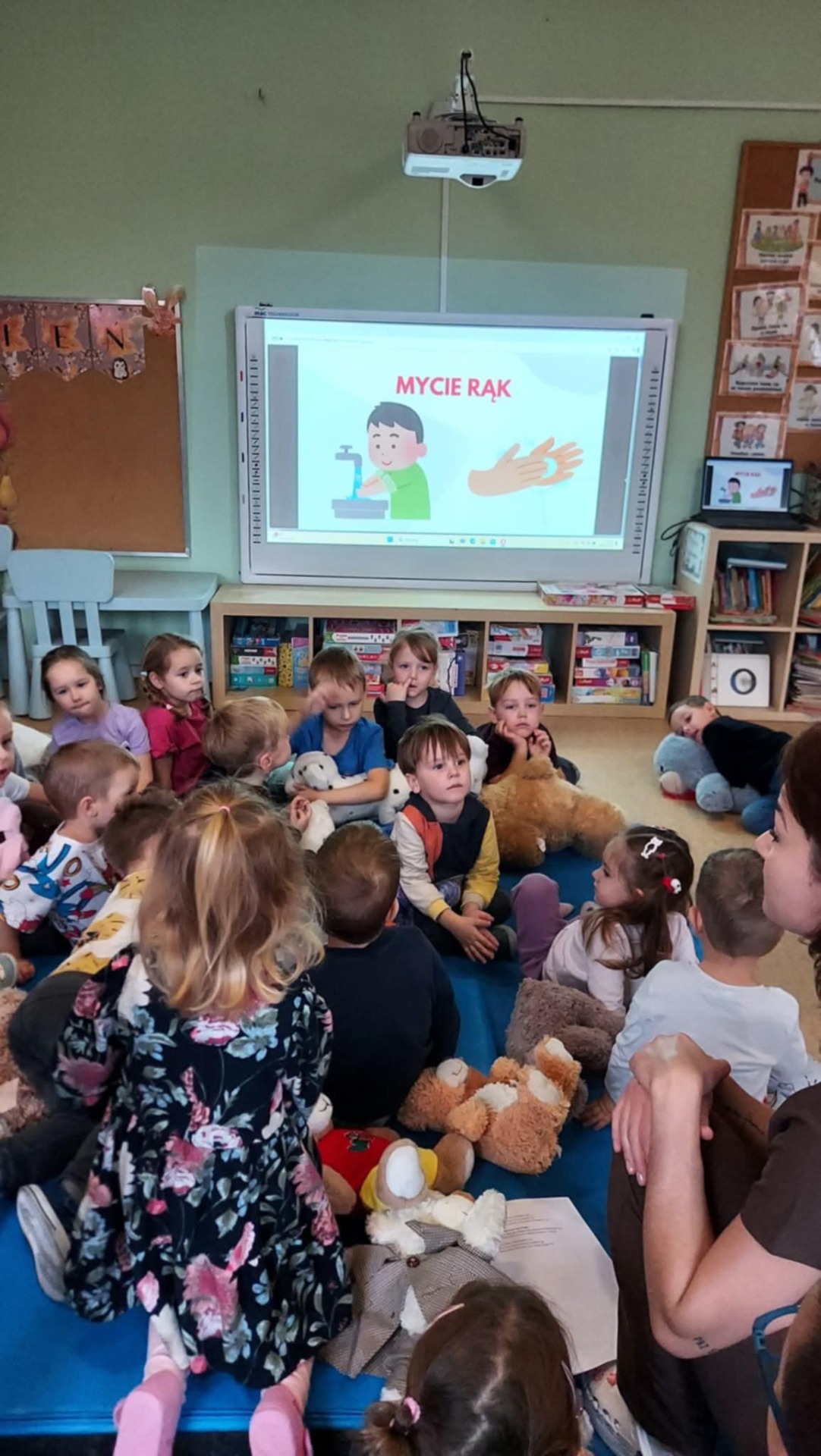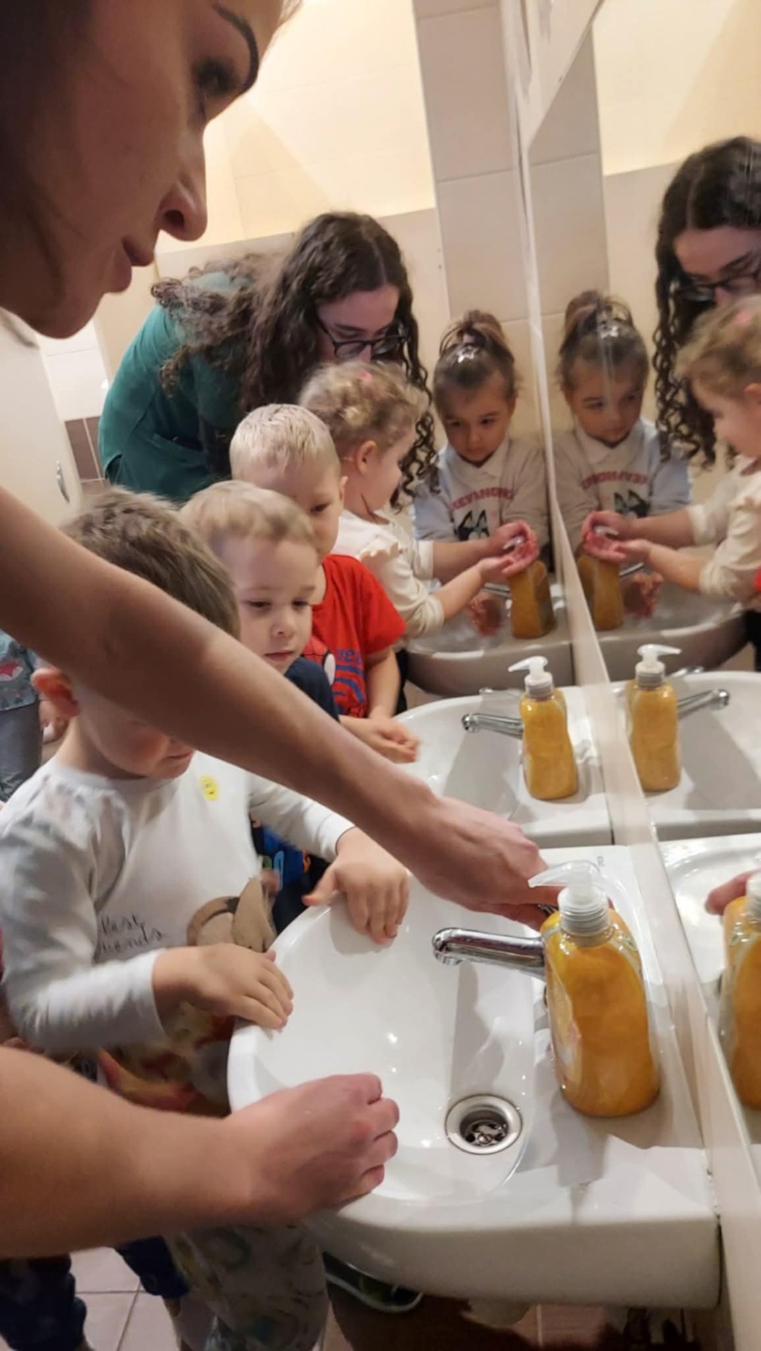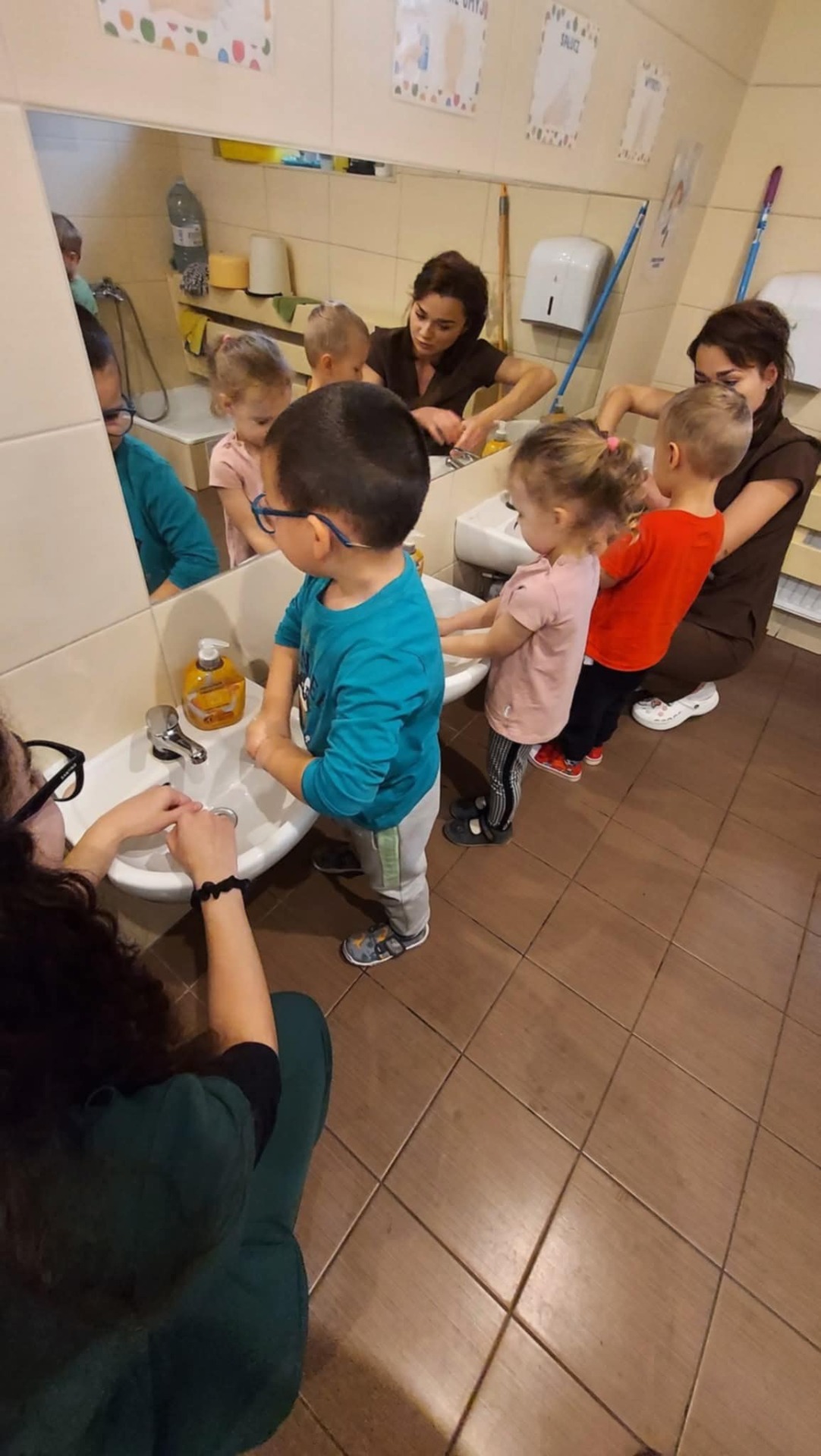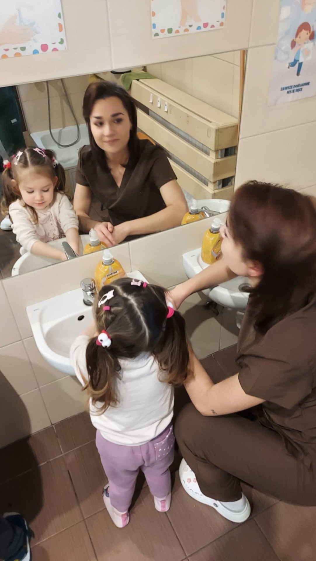 W dniu 3 listopada 2025r. w grupach najmłodszych odbyły się warsztaty edukacyjne dotyczące higieny mycia rąk oraz zasad udzielania pierwszej pomocy. Dzieci w sposób praktyczny i ciekawy uczyły się, jak prawidłowo myć ręce, dlaczego jest to tak ważne dla zdrowia oraz jak reagować w sytuacjach wymagających podstawowej pomocy przedmedycznej.