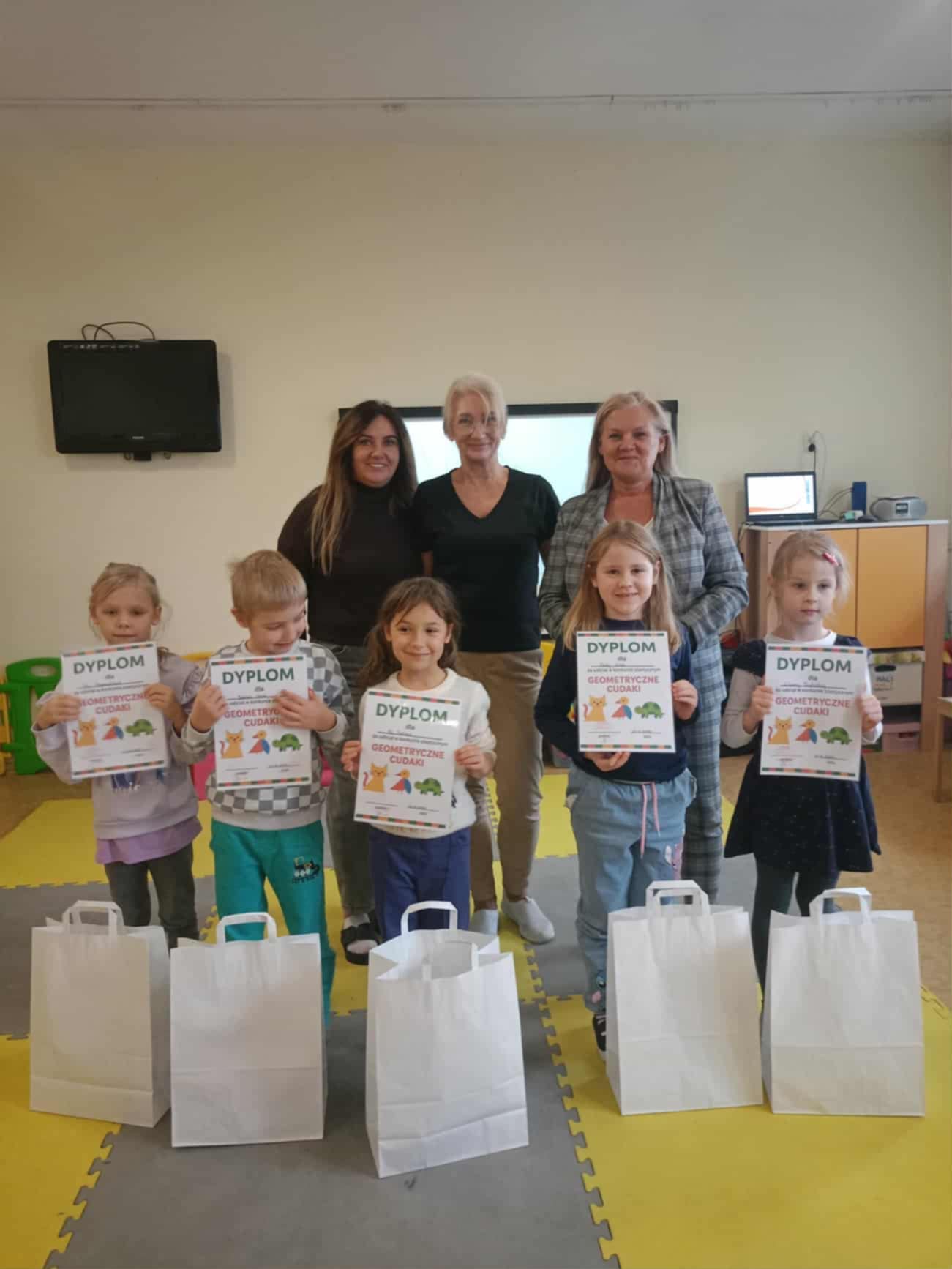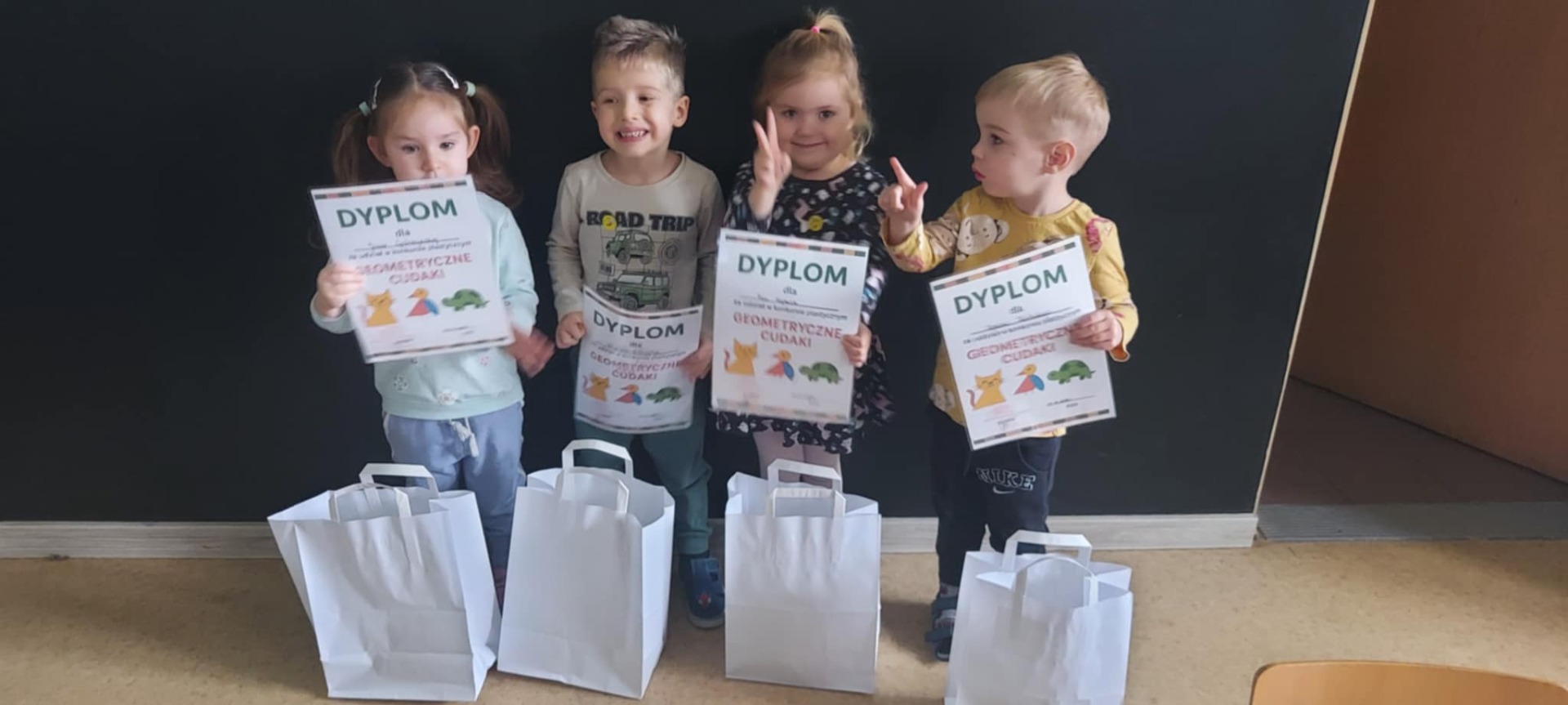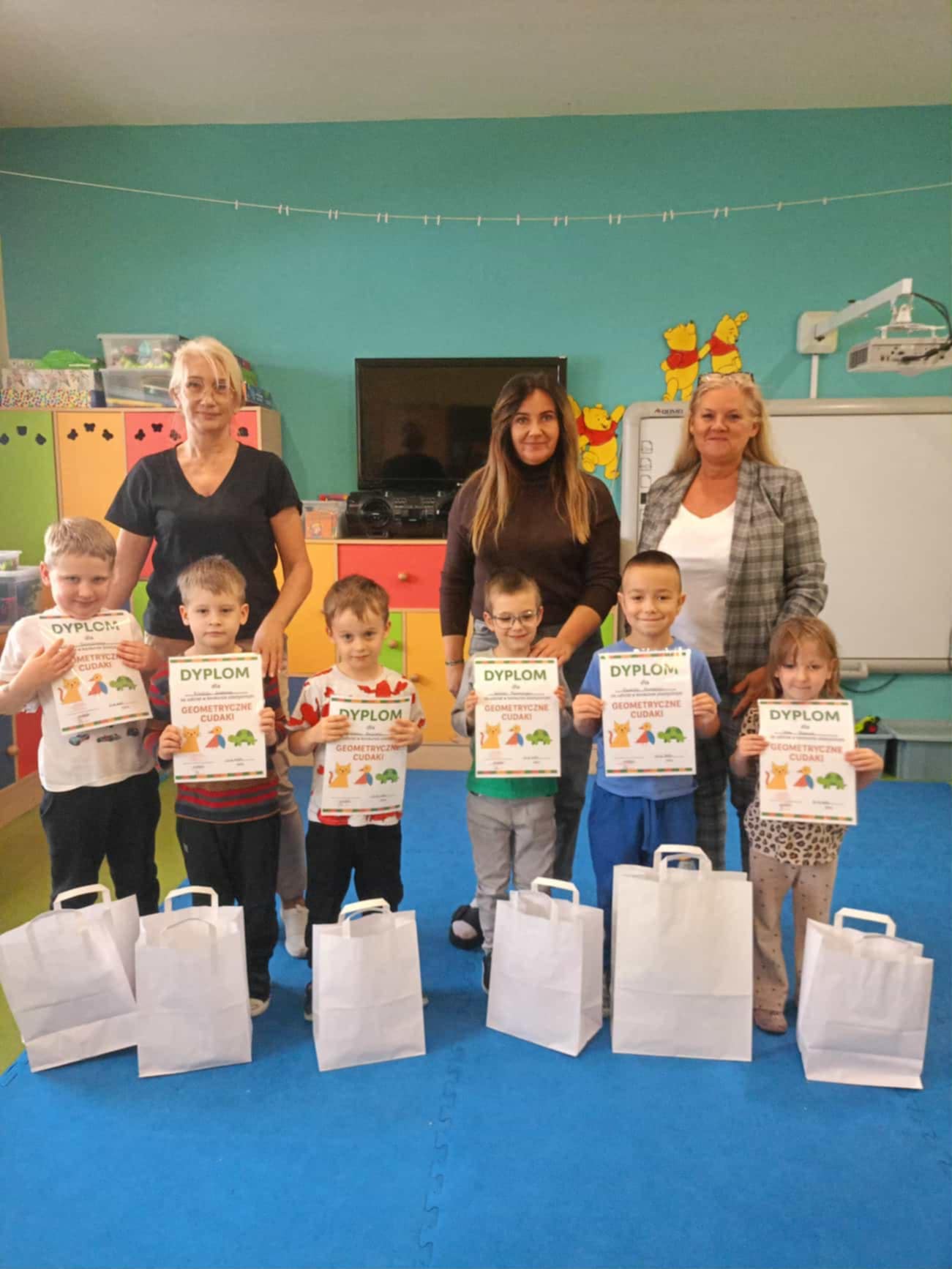 Konkurs plastyczny „Geometryczne cudaki” w przedszkolu wzbudził ogromne zainteresowanie wśród dzieci. Prace były pełne kolorów, fantazji i ciekawych pomysłów, a przedszkolaki z wielkim zaangażowaniem tworzyły swoje geometryczne postacie. Konkurs był doskonałą okazją do rozwijania kreatywności, wyobraźni oraz zdolności plastycznych, a przede wszystkim dostarczył dzieciom wiele radości. Każdy uczestnik otrzymał pamiątkowy dyplom oraz drobny upominek.